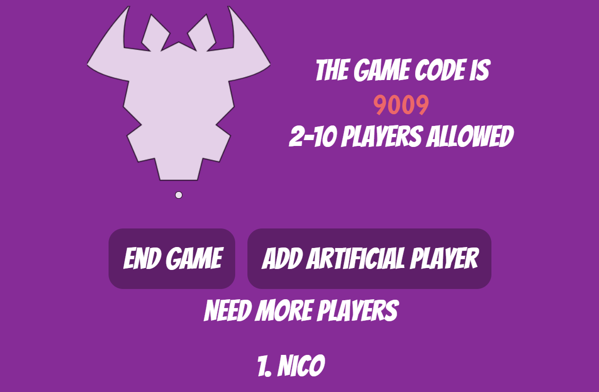 A game code is assigned and can be shared with others. Artificial players can also be added from this page.